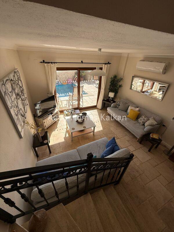 Experience this beautifully presented 3-bedroom, 3-bathroom villa in the heart of central Kalkan, offering the perfect blend of modern comfort and original character. Set in a quiet yet convenient location, this bright and airy home features an inviting open-plan kitchen and lounge area, complete with a guest toilet on the ground floor for added practicality.